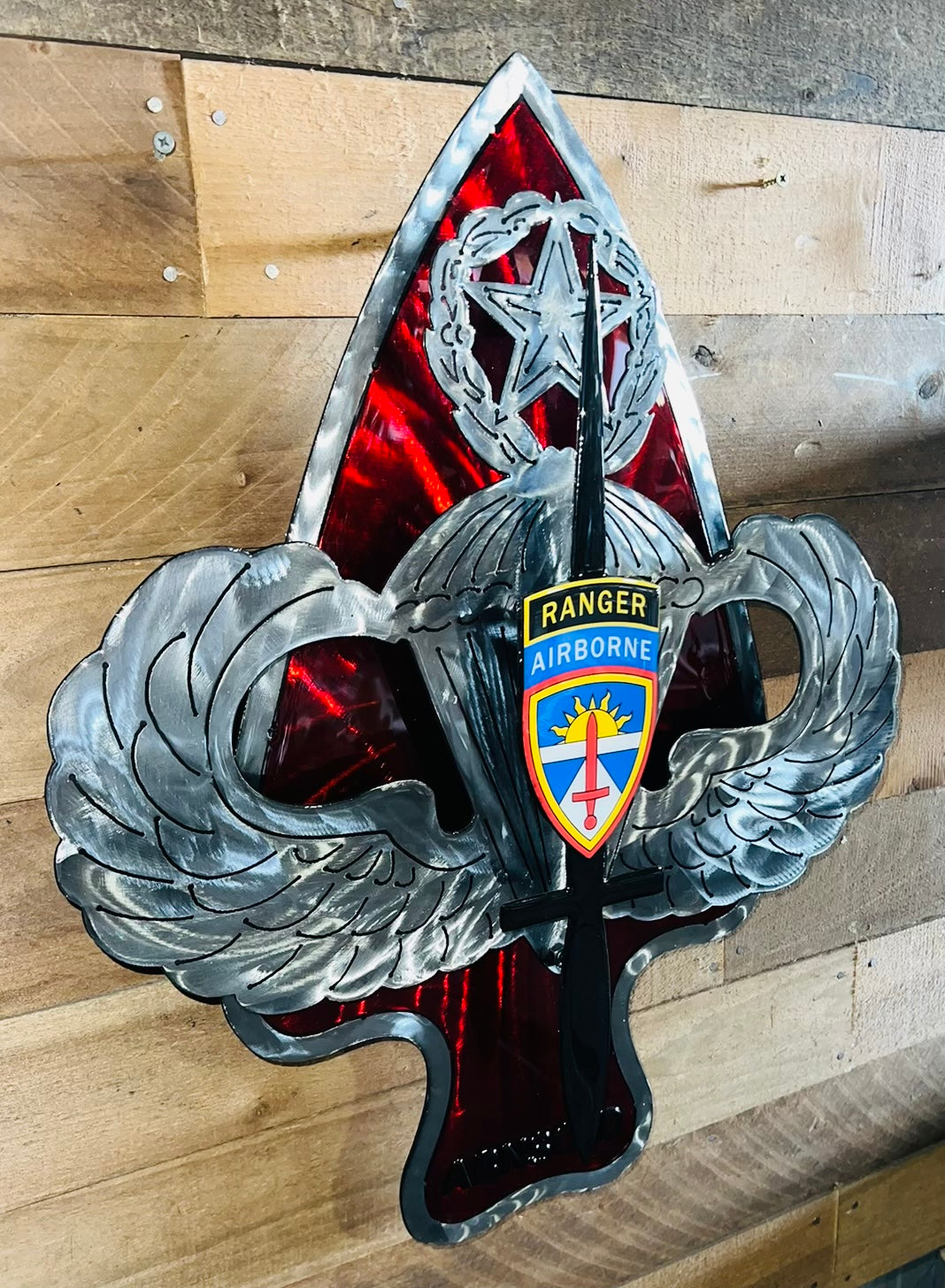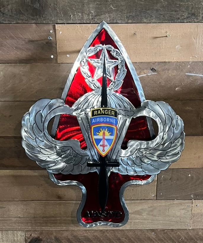 This handcrafted steel sculpture honors the elite mission of ABNSOTD—testing and validating airborne and special operations equipment to ensure readiness, safety, and operational superiority.