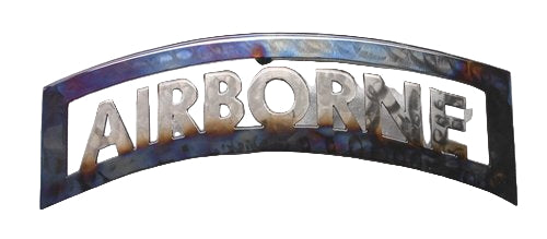 Celebrate the grit, courage, and legacy of America’s airborne warriors with this handcrafted Airborne Tab metal sculpture. Inspired by the iconic shoulder tab worn by U.S. Army paratroopers, this bold steel wall art is a powerful tribute to those who serve with honor from above.